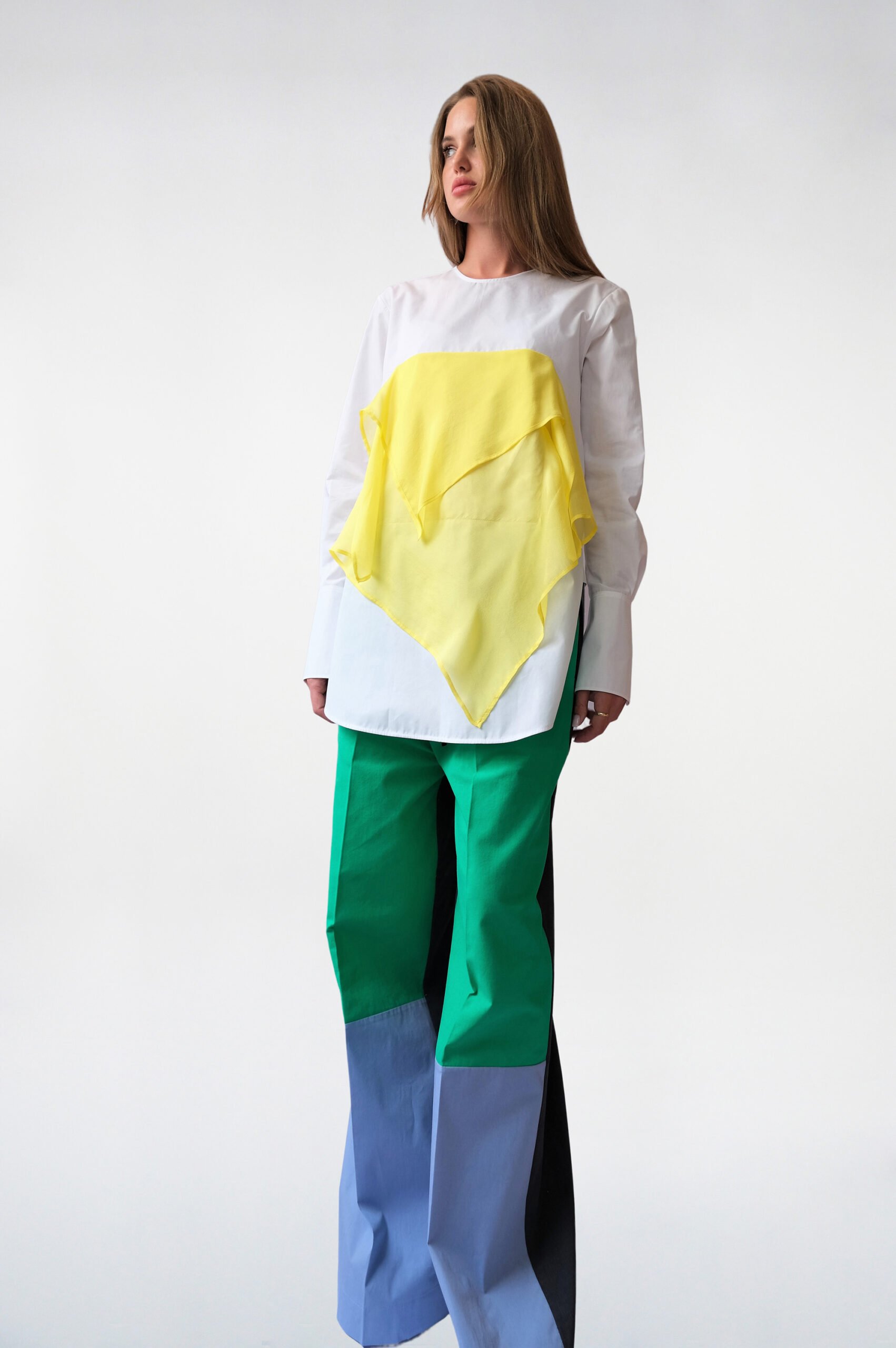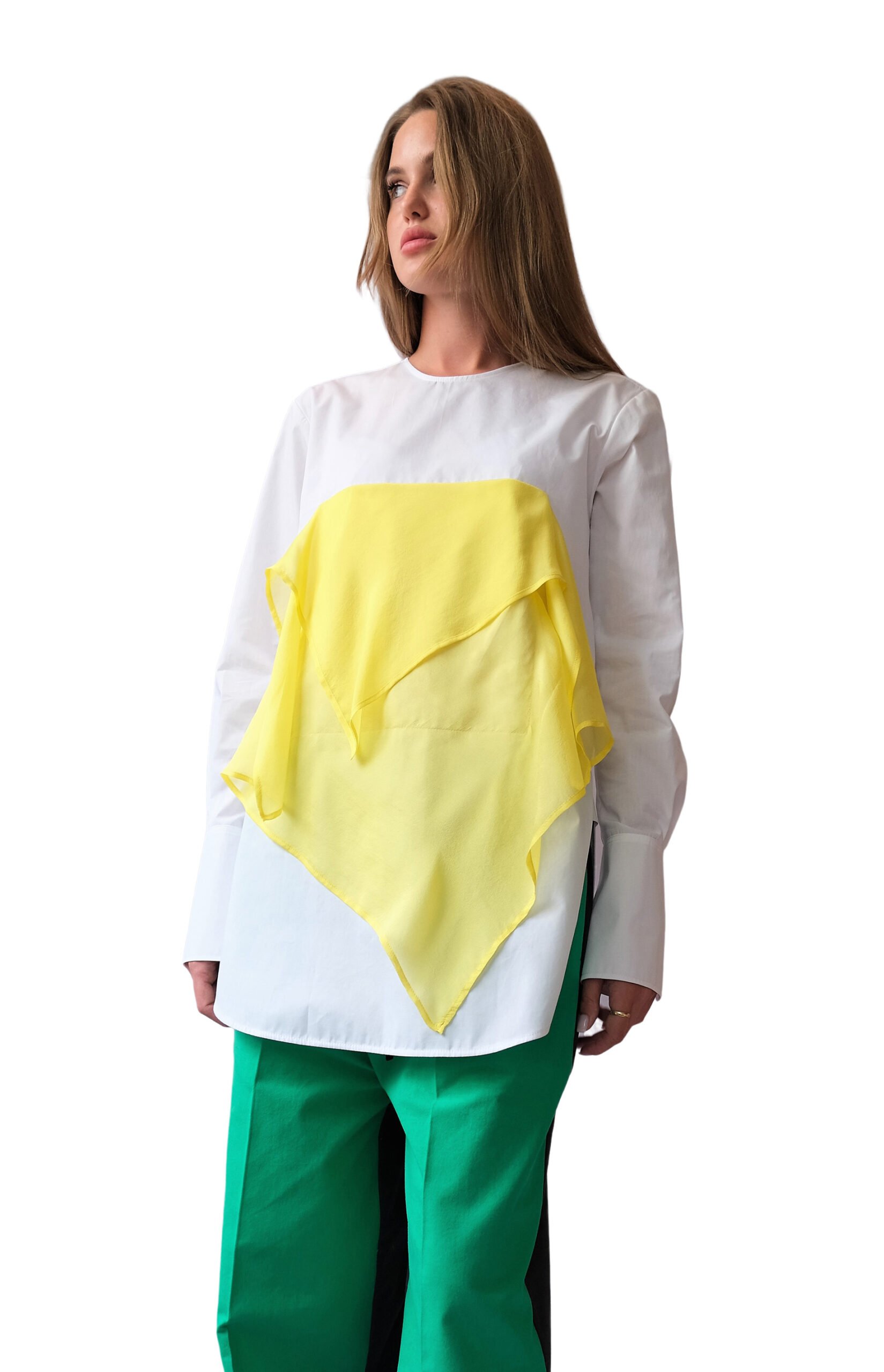 White & Yellow shirt with long sleeve